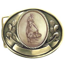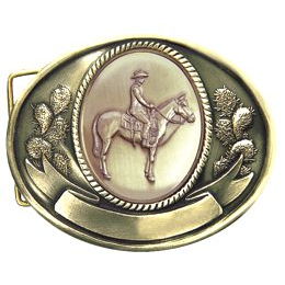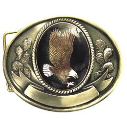 Engravable solid metal buckle with choice of cloisonne or antique high-relief medallion insert.